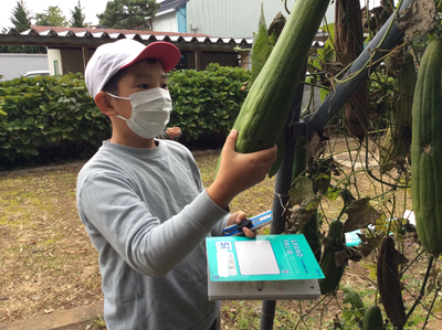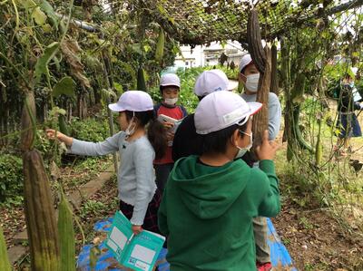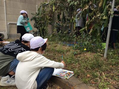 4年生の理科の様子です。気温が下がり、ヘチマの様子も変わってきました。今日の観察では、ヘチマの実の変化や葉や花の数が減ってきたことに気づき、記録カードにまとめることができました。