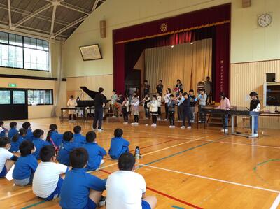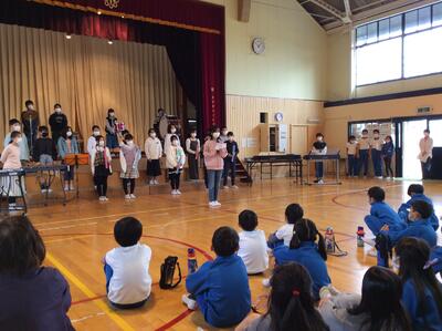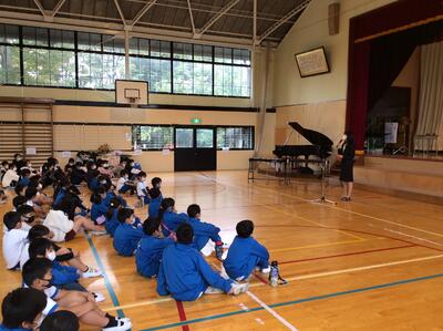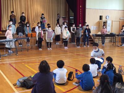 音楽祭壮行会の様子です。全校生で5年生の演奏を聴かせてもらいました。5年生は、これまでの練習の成果を発揮して、すばらしい演奏を聴かせてくれました。本番は10月27日(水)です。残された時間は本当にわずかですが、本番でもすばらしい演奏ができるよう祈っています。