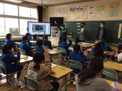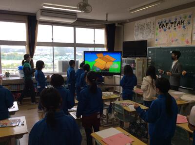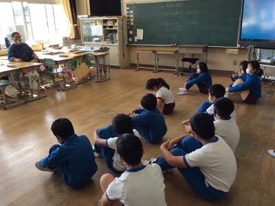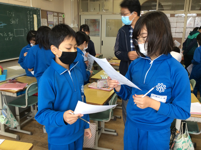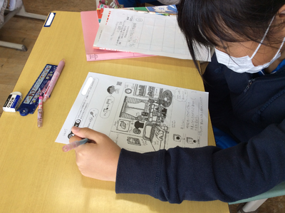 5年生の外国語活動の様子です。「on,in,under,by」の使い分けについて、Where is the ○○ ? ー It's (on,in,under,by) the ○○.の構文を使いながら学習しました。子どもたちは、英語でのコミュニケーションを楽しみながら学んでいるようでした。