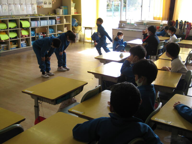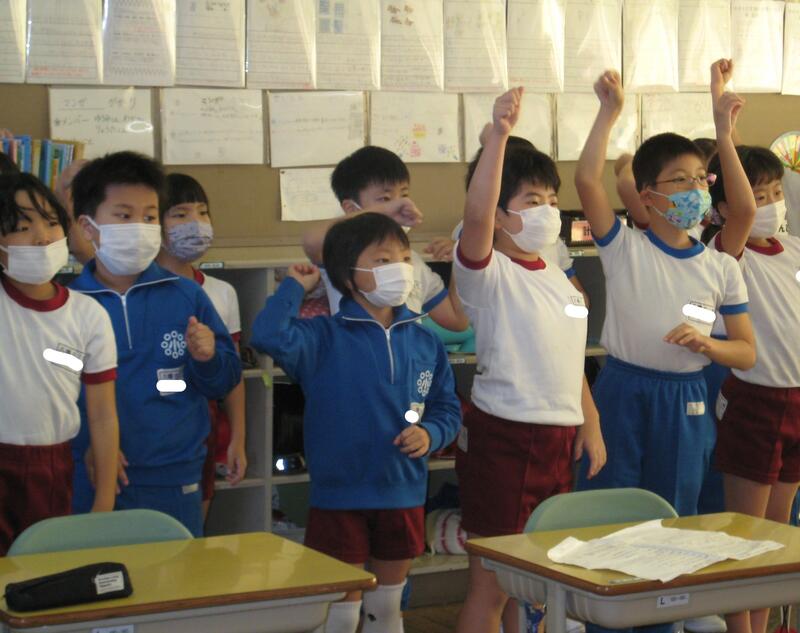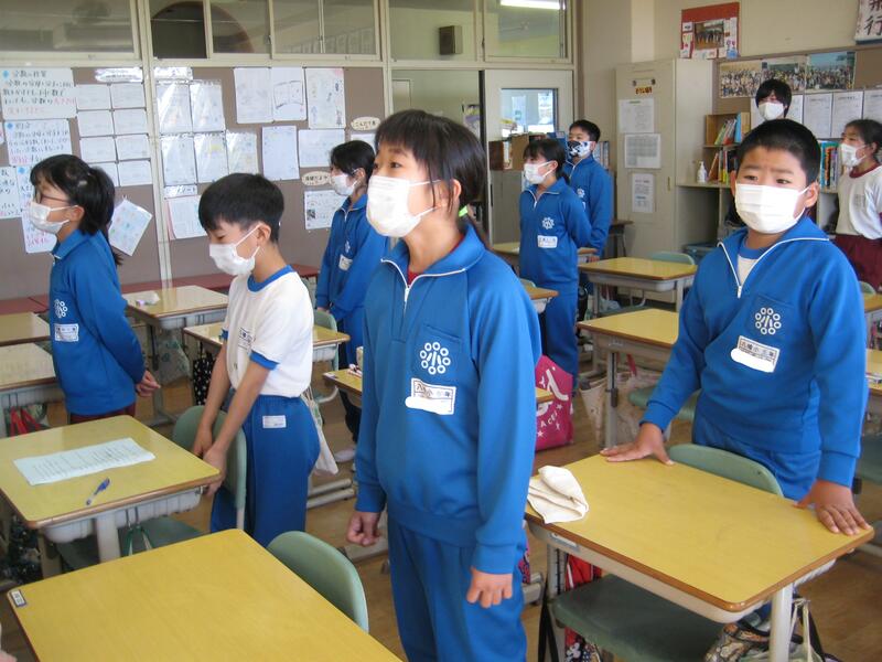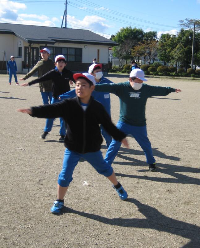 毎時間のはじめに、運動身体づくりプログラムを取り入れています。