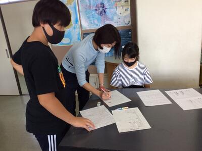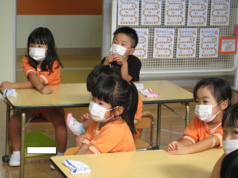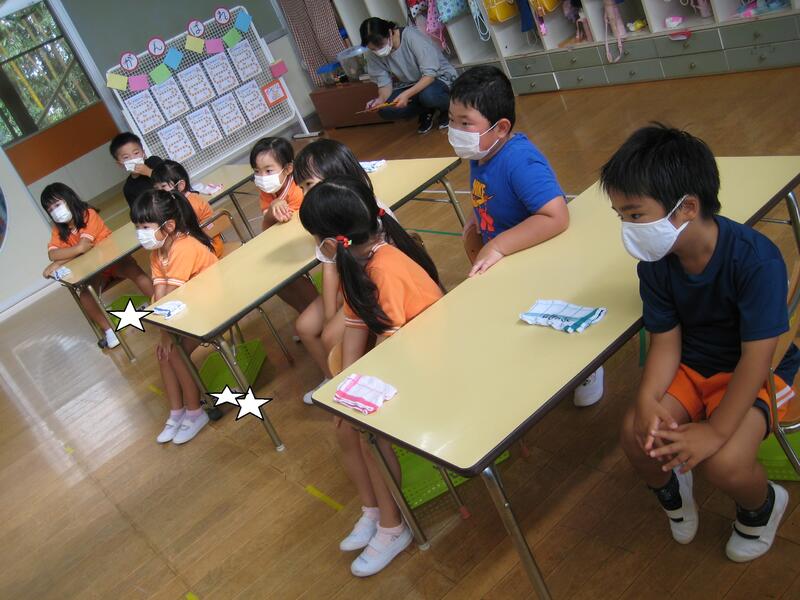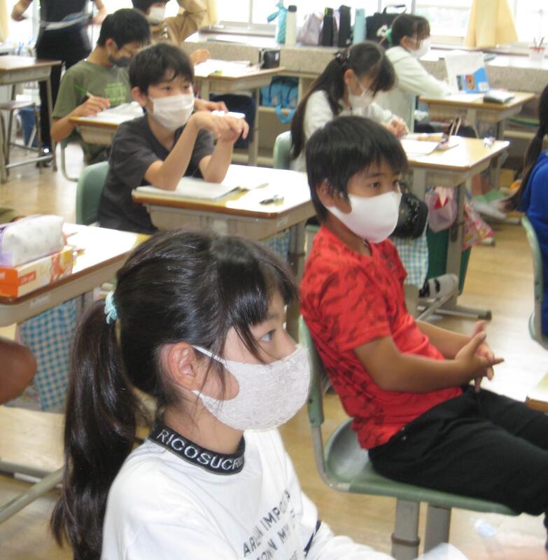 子どもたちは、実習生の先生の話を真剣に聞いています。