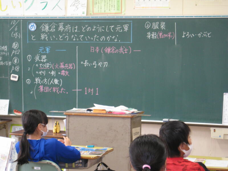 子どもたちは、日本軍と元軍の戦い方の違いについて、