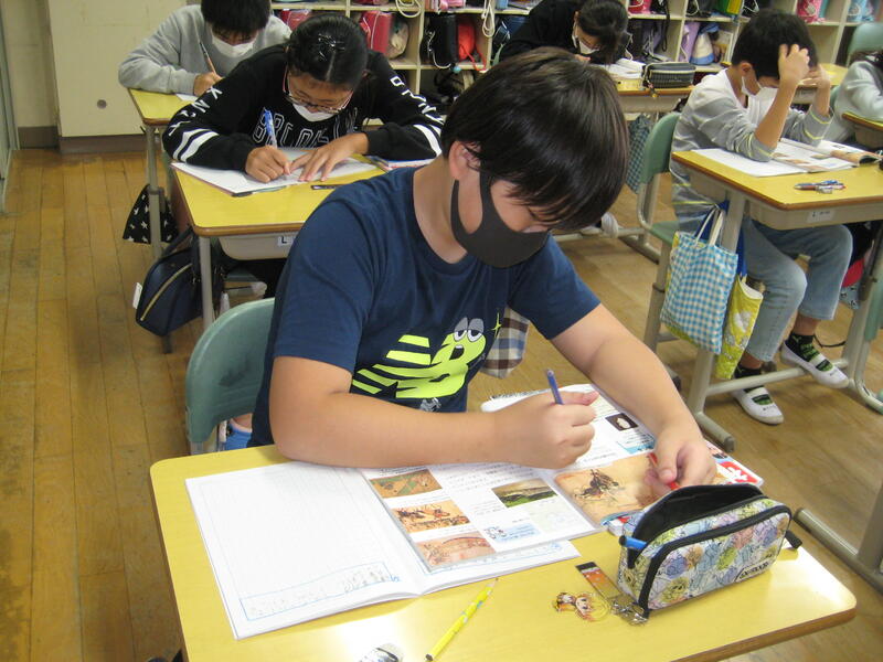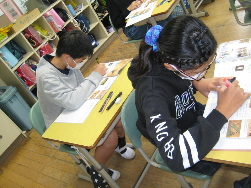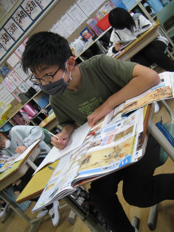 教科書を読みながら、戦いの様子やその後どうなっていったかを学習しました。