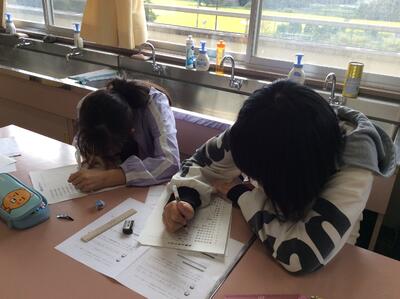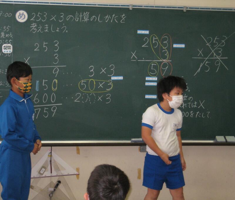 子どもたちは、今までの学習をもとにしたり、友達と相談したりしながら考えました。