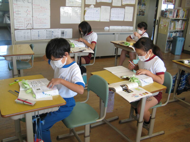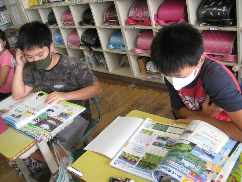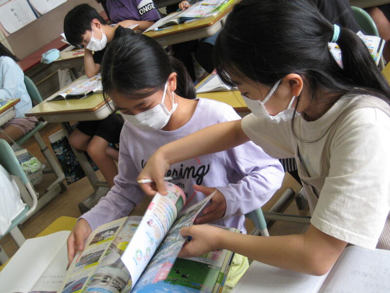 子どもたちは、教科書や資料集を見て、どこにヒントが書いてあるのかを探します。