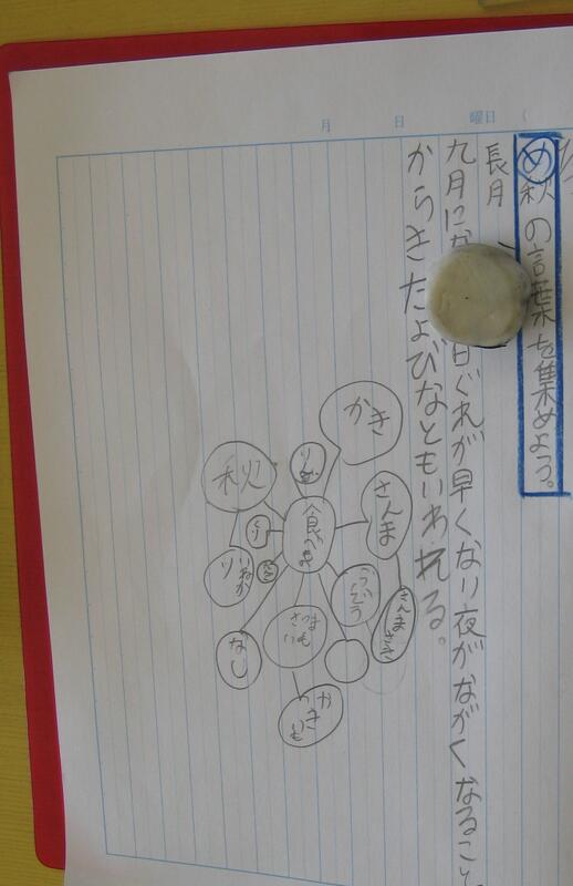 その後、秋と言えば・・・思いつくものをノートに書いていきます。