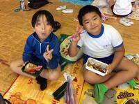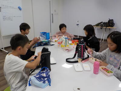 お弁当は学校の多目的室で食べました。おいしいお弁当におやつもついて大満足の様子でした。