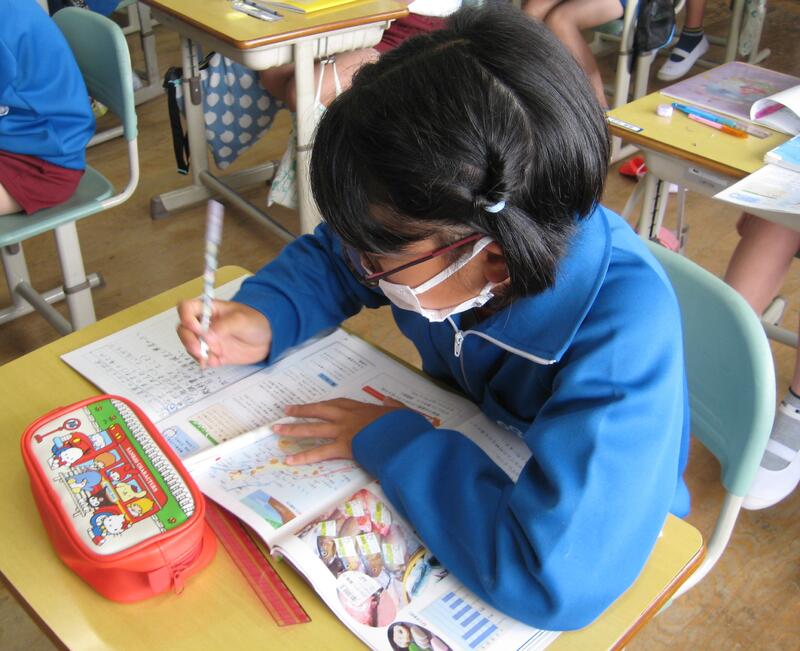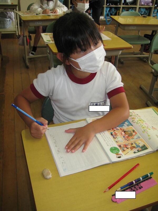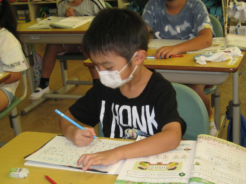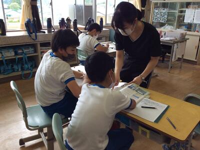 文の作り方を確認した子どもたちは、教科書を見ながらノートに書き始めます。