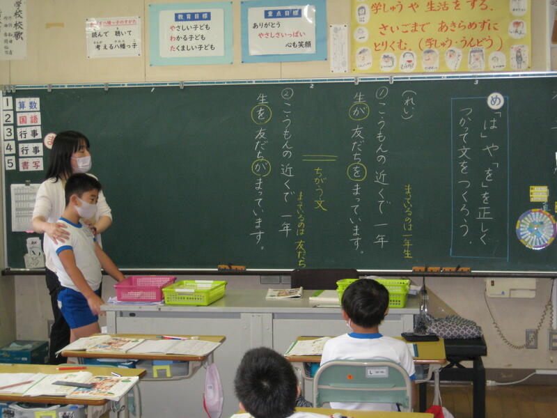 今日は、1年生で習った漢字を取り入れながら、「は」や「を」を正しく使って文を作ります。