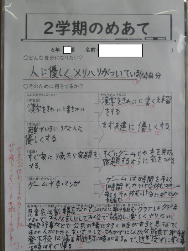 そのために何をすればよいのかを考えて立てた2学期のめあて。