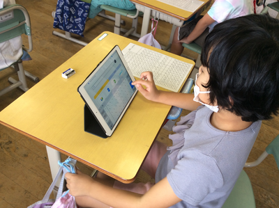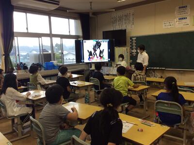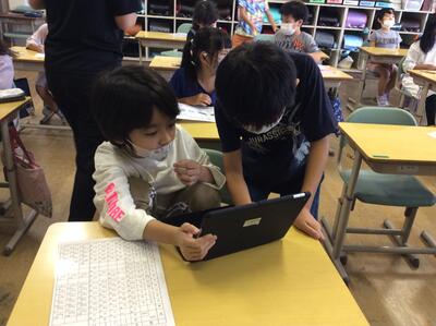 3年生の総合の様子です。ロイロノート使って自己紹介のスライドを作りました。ローマ字で文を打ち込み、それに合わせた画像を添えていきます。子どもたちは自分の好きな物をたくさん紹介することができました。