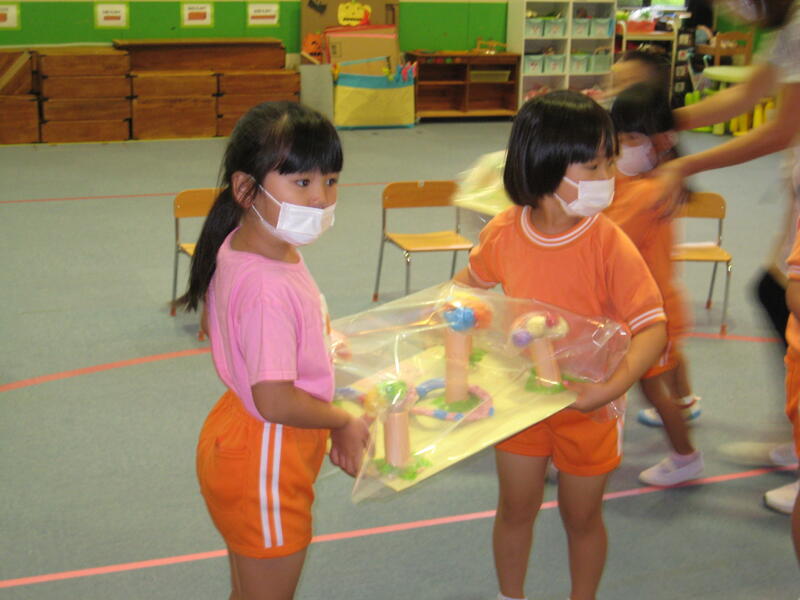 お友達や先生からのプレゼントをもらってうれしそうです。
