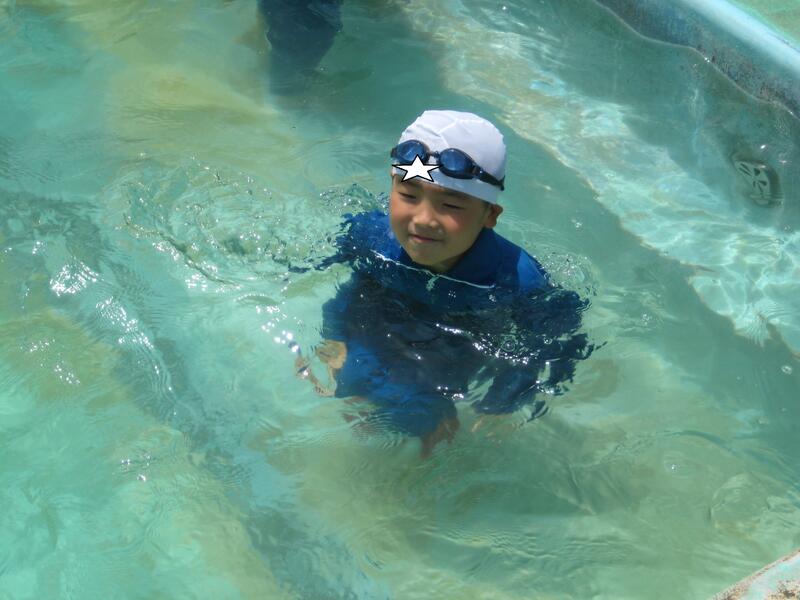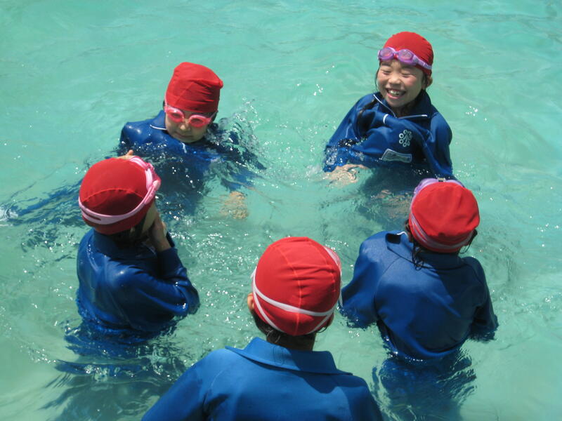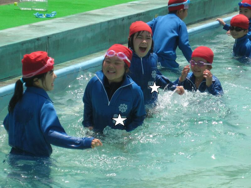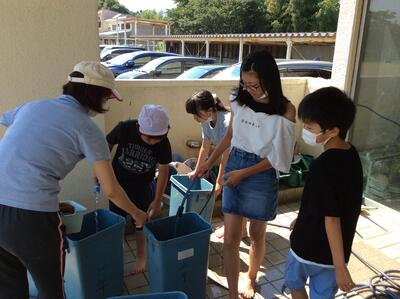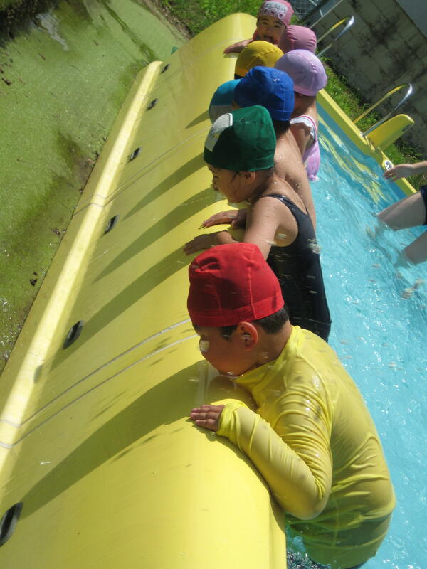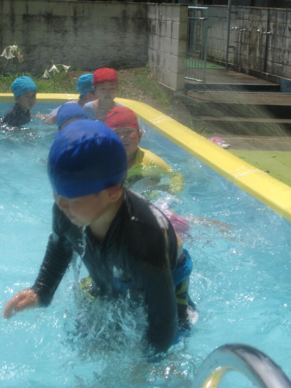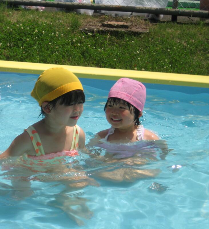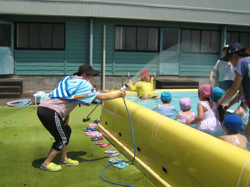 今日は天気がよいので、幼稚園の子どもたちも水遊びをしました。