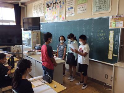 朝の様子です。企画委員会が各学年の挨拶が上手な児童に賞状を送りました。明日で1学期が終わりますが、挨拶を上手にできる児童がとても増えたと感じます。2学期もこのような良い習慣を続けていってほしいと思います。