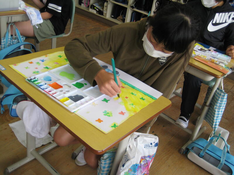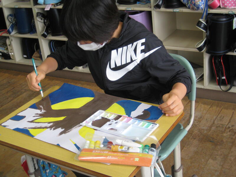 選挙ポスター、愛鳥週間のポスター、お話の絵など自分で表したいものを決めて取り組んでいます。