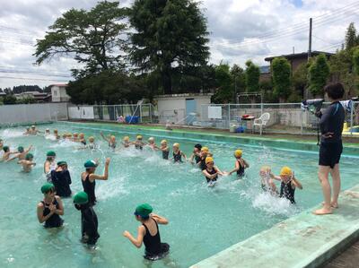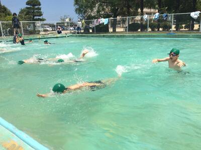 高学年の水泳の様子です。プールでの学習では距離を保ちながら、楽しく活動しています。近頃はコロナウイルス対策だけでなく、熱中症の対策も必要な季節になってきました。こまめに水分や休憩をとりながら夏を乗り切っていきましょう。