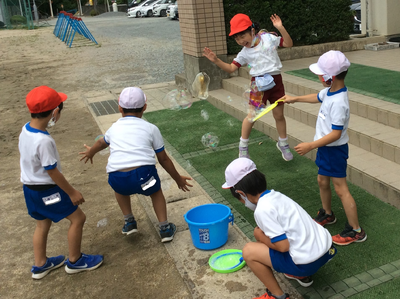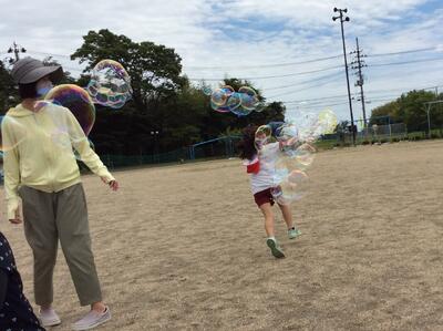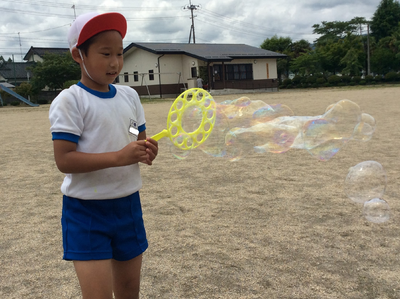 1年生の生活科の様子です。遊びの中でシャボン玉の特徴やうまく作るコツを学びました。みんな上手にできましたね。