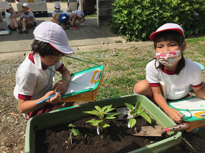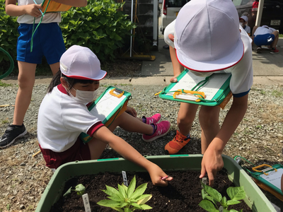 3年生の理科の様子です。3年生ではホウセンカやピーマン、オクラなどいろいろな植物を育てていました。本日は大きくなってきた芽をプランターに植え替え、観察をしました。自分たちの育てた植物の成長を確かめながらしっかりと観察することができました。