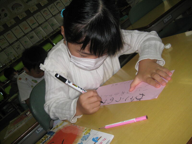 2021年7月1日 13時10分1年生が七夕の願いごとを書きました。