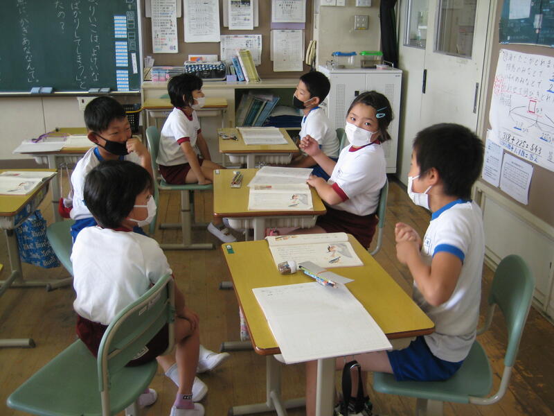 教科書のどの部分からわかるかをみんなで話し合っています。