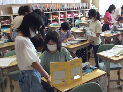 5年生の社会の授業の様子です。今日は沖縄県の観光産業についてグラフや資料を使って調べました。必要な情報を絞って、簡潔にまとめることができており大変驚かされました。社会科でつけたい力がだんだんとついてきていますね。