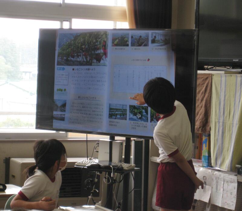 3年生は教科書や資料を見ながら、いちごづくりの工夫について調べています。