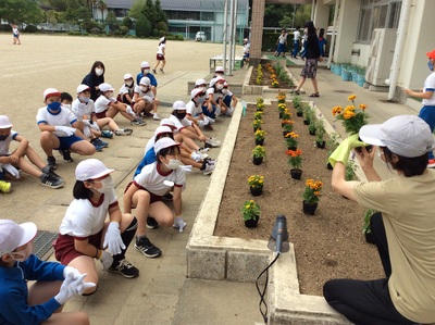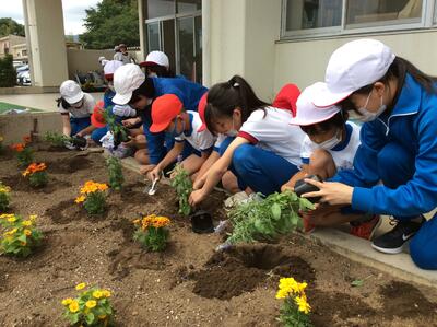 本日の昼休みに全校生で苗植えをしました。各学年で時間を分けながら混雑しないように作業を進めることができました。八幡っ子の皆さんのおかげで学校がまた一段と華やかになりました。お疲れ様でした!