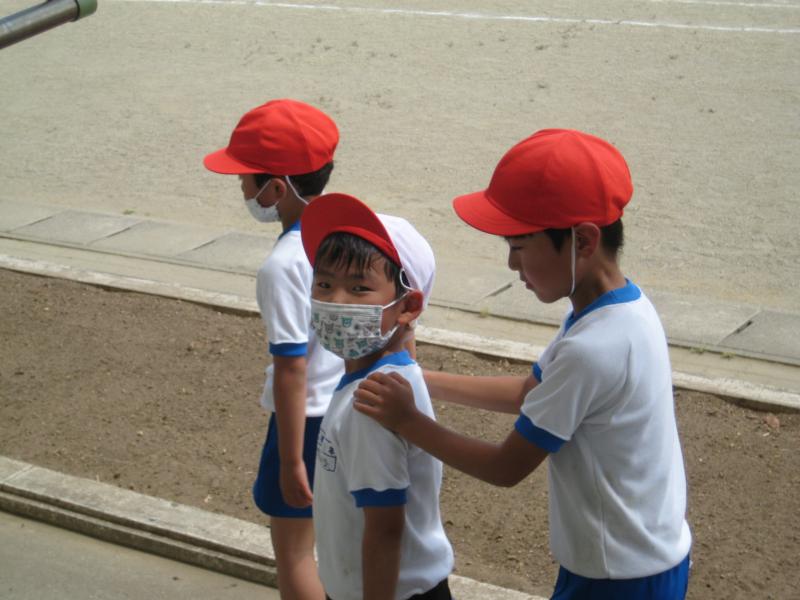転んでけがをした1年生を保健室に連れていくやさしい2年生の姿も見られました。