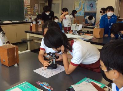 5年生の理科では、メダカの卵を観察しました。初めて使う解剖顕微鏡でしたが正しく使うことができました。卵がかえる日が楽しみですね。