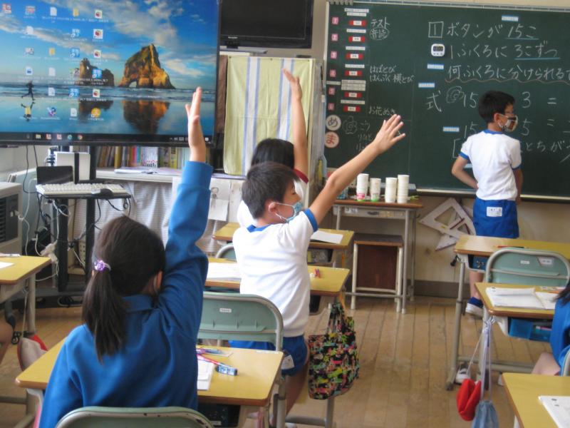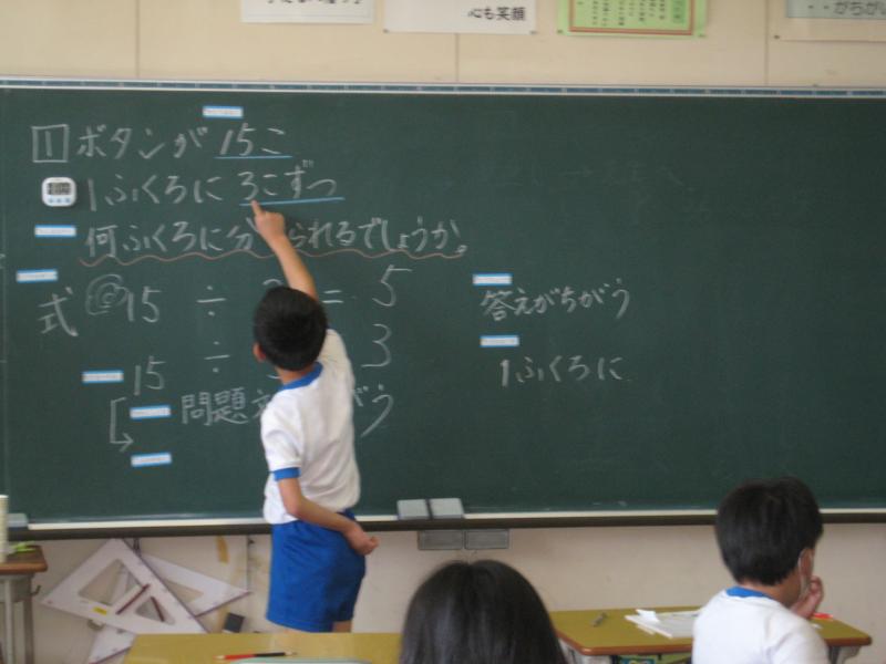 3年生の算数科の学習の様子です。問題を呼んで式を立てるのですが、2通りの考えが・・・。