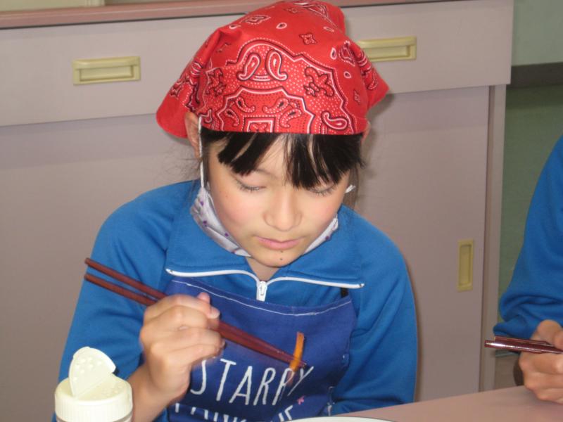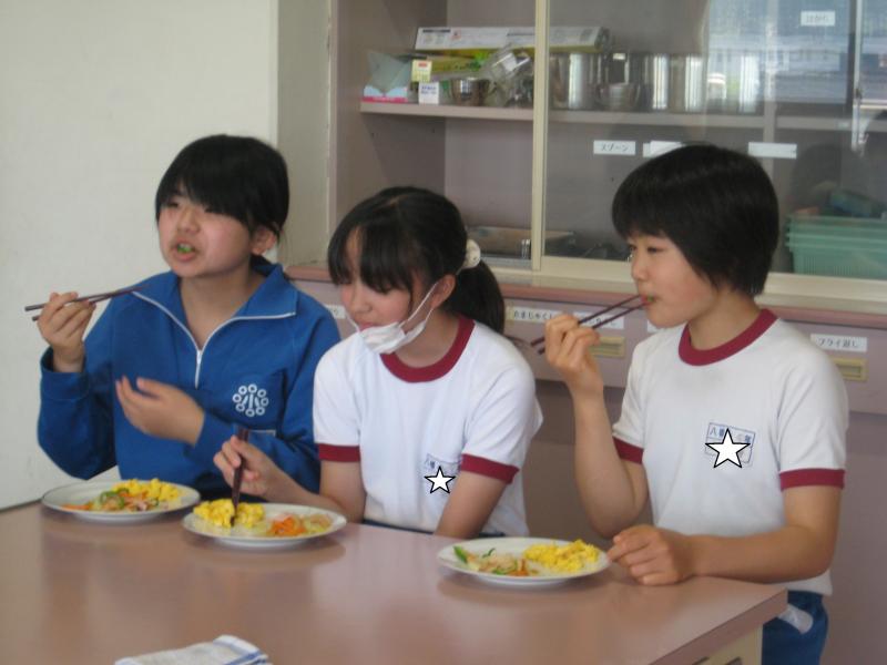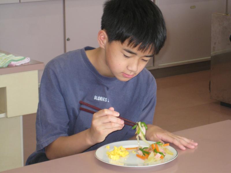 待ちに待った調理実習だったので、苦手な野菜にも挑戦しておいしくいただきました。