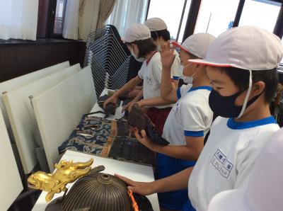 4年生は総合的な学習の時間に相馬市千客万来館と相馬野馬追甲冑館の見学をしました。この地域で昔から大切にされている文化である野馬追いについて興味をもち調べることになったようです。本日の見学では、千客万来館でホラ貝体験や甲冑の試着を行ったり、甲冑館で積極的に質問したり有意義な時間を過ごすことができました。