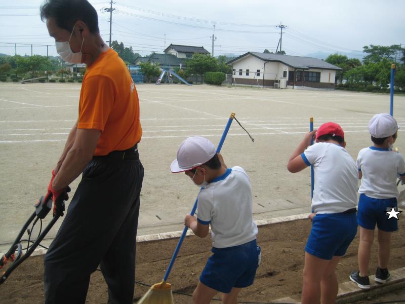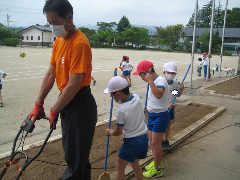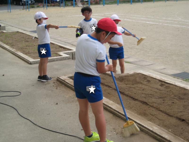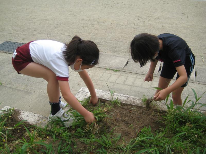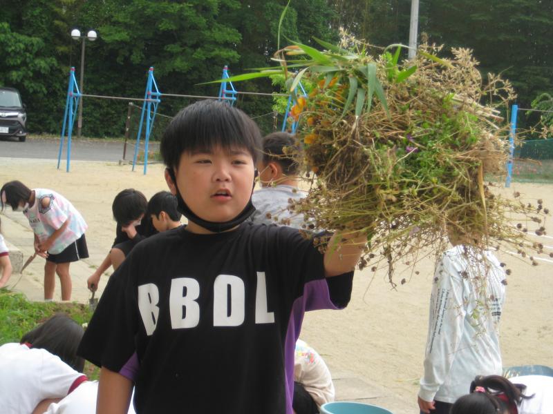 新しい苗を植えるために、みんなで協力して花壇を整備しました。