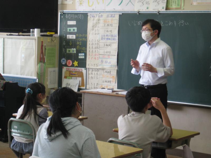 今日は、法律事務所の弁護士さんにおいでいただき、いじめの出前講座を行いました。