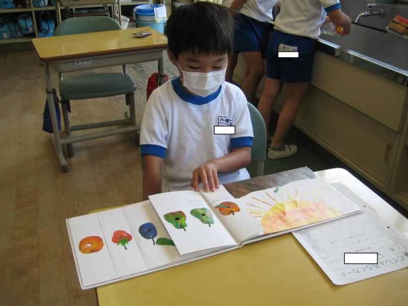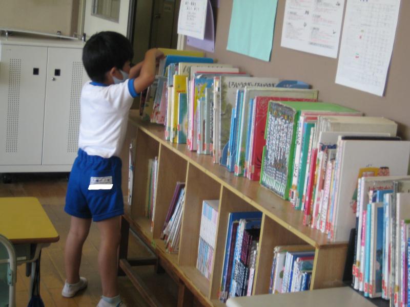 子どもたちは、その本棚から自分で読みたい本を選び、読書をします。