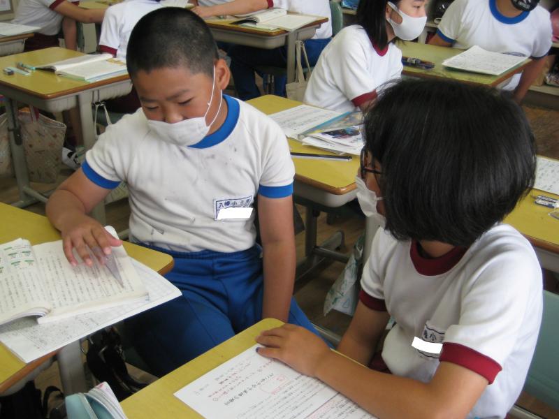 書いた後は、友達と考えを交流し、感想を伝えました。