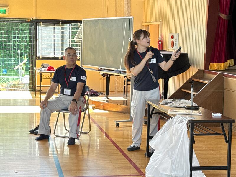 日本赤十字福島県支部から2名の講師の方にご来校いただき、竹ひごタワーを使った防災コミュニケーションワークショップと避難所ですぐに使える新聞紙スリッパづくりに挑戦いたしました。