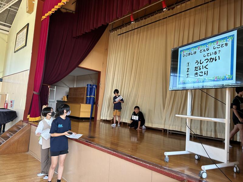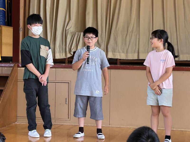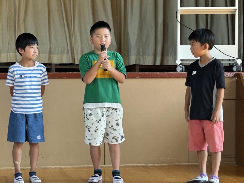願い事発表、クイズ・劇、七夕の歌、最後に全校ゲームを行いました。