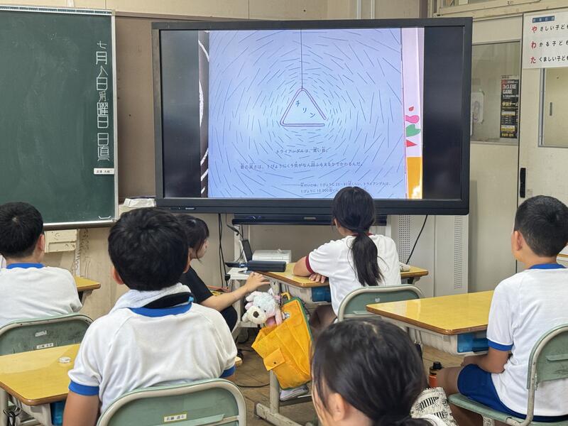 今年は、いつもの年より山からトンボが下りてくるのが早く、休み時間に虫取り網でトンボを捕まえようとする姿が多く見られています。