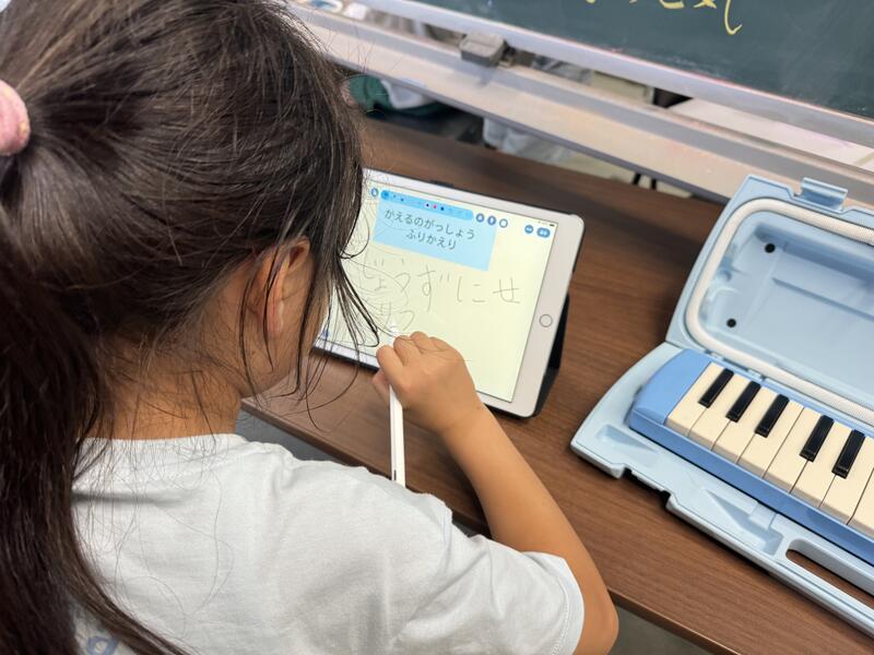 2年生では、初めての鍵盤ハーモニカでの演奏を何度も練習したり自撮りしたりして、自分が納得いくまでの演奏、そして、その振り返りまでをロイロノートにまとめ、クラス内で共有していました。