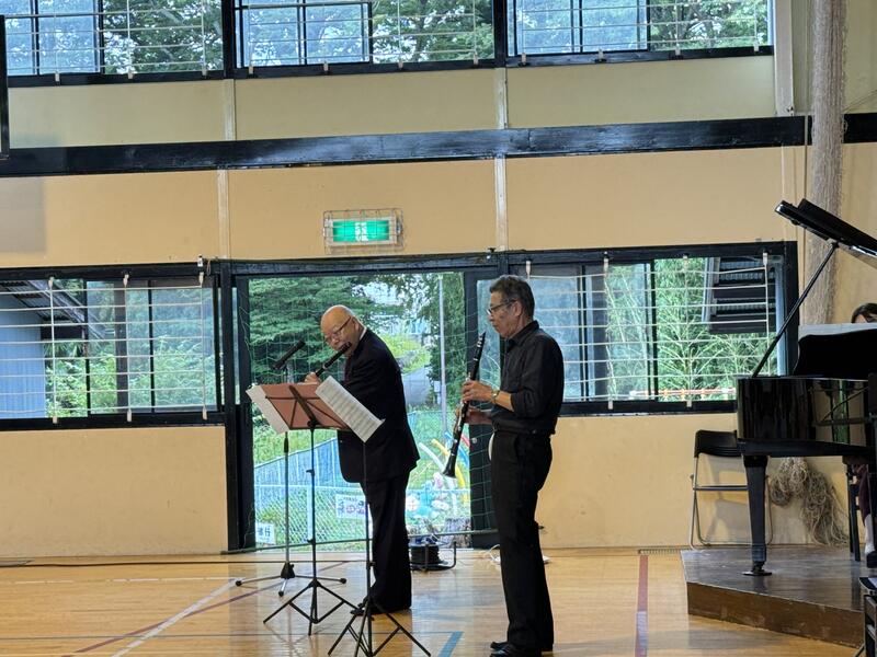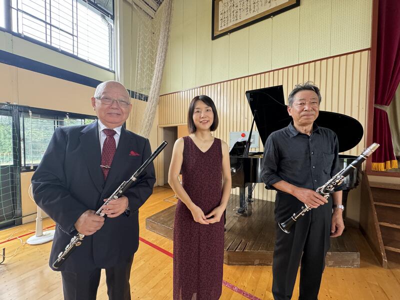 演奏会では、フルートやクラリネット、ピアノによる独奏、二重奏、三重奏が披露され、最後はサプライズで校歌まで演奏していただき、大盛況のうちに終わることができました。