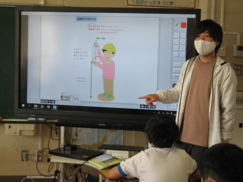 4年生は理科の学習で温度計の正しい使い方を学習しました。