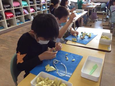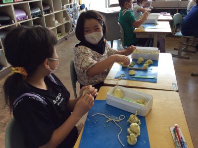 3年生の図工の様子です。ねんどを糸で切ったり、ねんどべらでかき出したりしながら作品を作りました。今日新しく学習した技法でしたが、見事に使いこなしすてきな作品が仕上がりました。