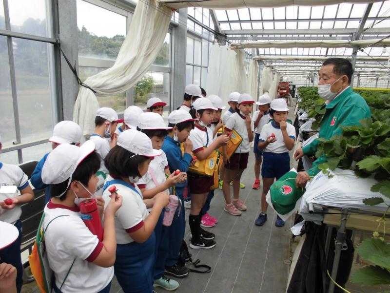 3年生は社会科の学習で、和田いちご園の見学をしました。