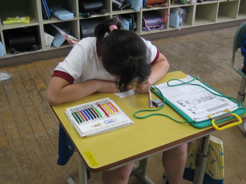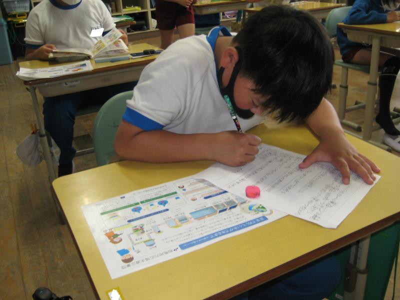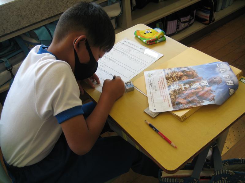 学校に帰ってきてからも、リーフレットを見てわかったことをカードに付け加えました。