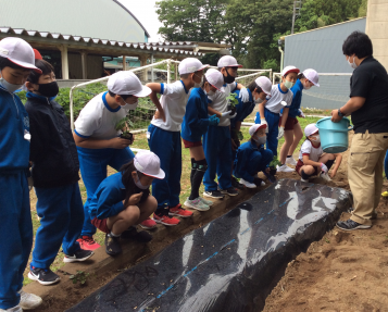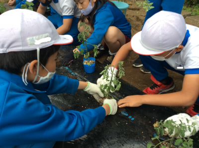 4年生の苗植えの様子です。JAの方々に教わりながらキュウリとミニトマトを植えました。元気に育ってくれるといいですね。