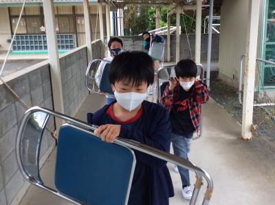 2021年5月21日 14時25分5・6年生の運動会準備の様子です。長机・パイプ椅子の移動や清掃などそれぞれに一生懸命準備を進めてくれました。