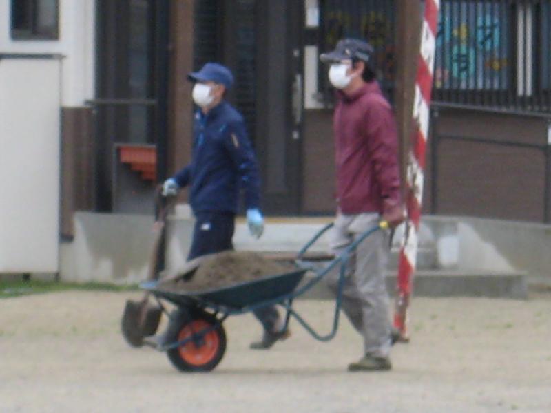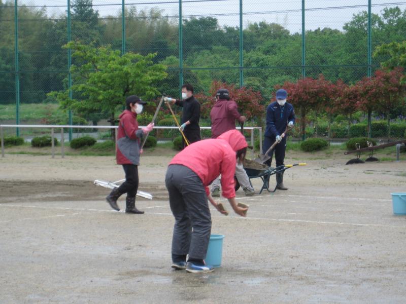 早朝から,多くの保護者の方にご協力いただき,校庭の整地を行いました。