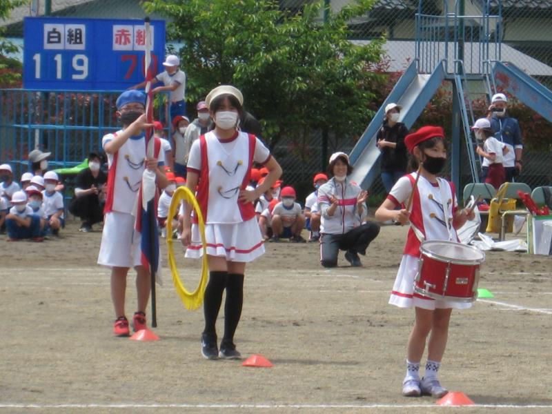 演奏曲目は,ドラムマーチ,校歌,さんぽです。