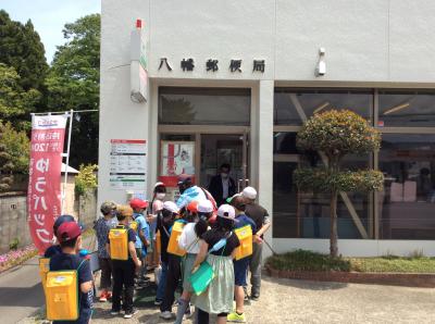 5月14日(金)の2年生の授業の様子です。生活科の授業で学校のまわりを探検しました。八幡神社と郵便局を見せていただき、学校付近の様子を知ることができました。